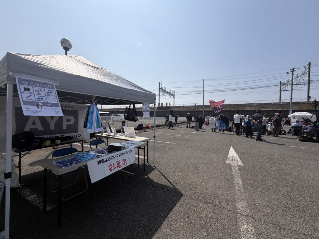 また、朝霞よさこいプロモーション(AYP)では物販ブースを出店し、地域チームのグッズやオリジナルグッズの販売を行いました。演舞だけでなく、ブースにも多くの方にお立ち寄りいただき、よさこいをより身近に感じていただける機会となりました。